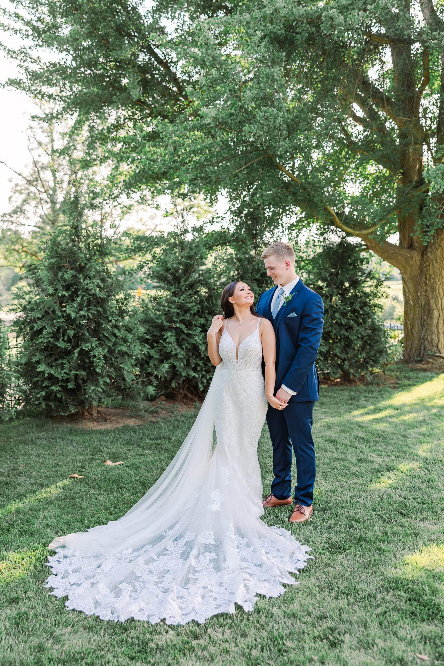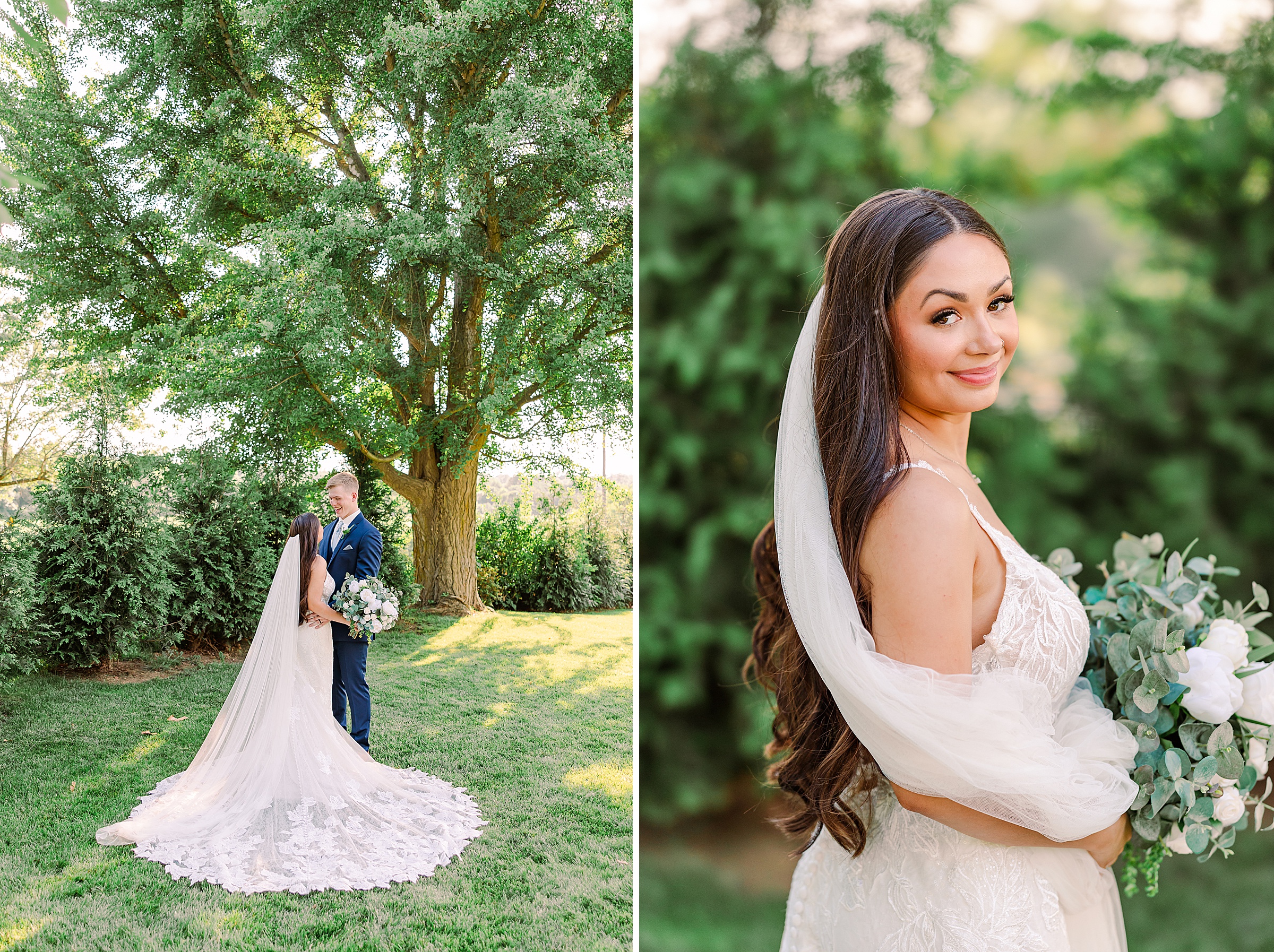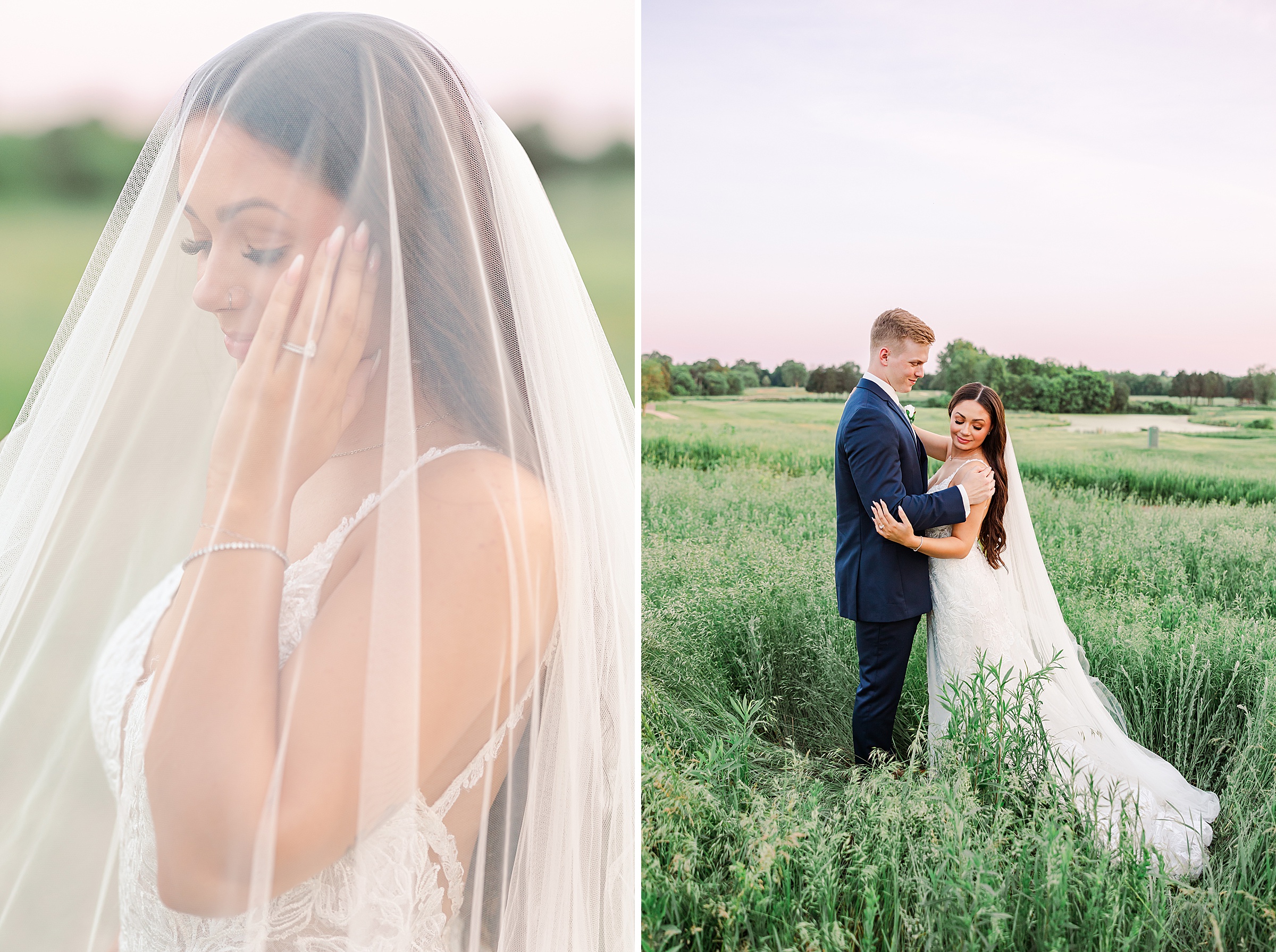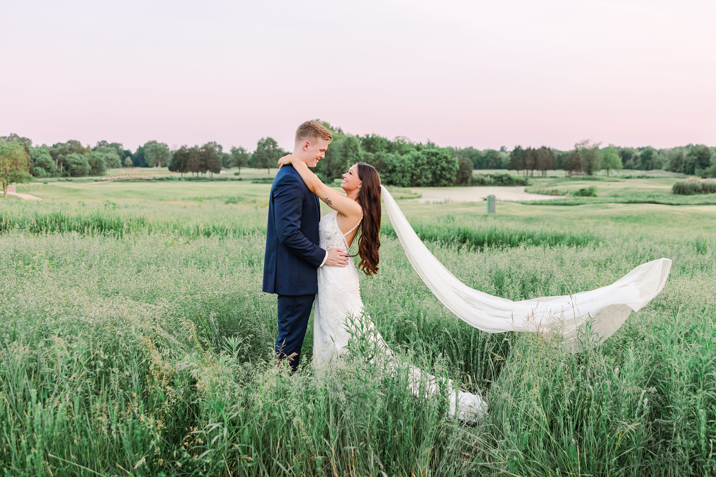 The tall white columns, dramatic staircase, and expansive golf course created the perfect backdrop for portraits that felt both classic and romantic.